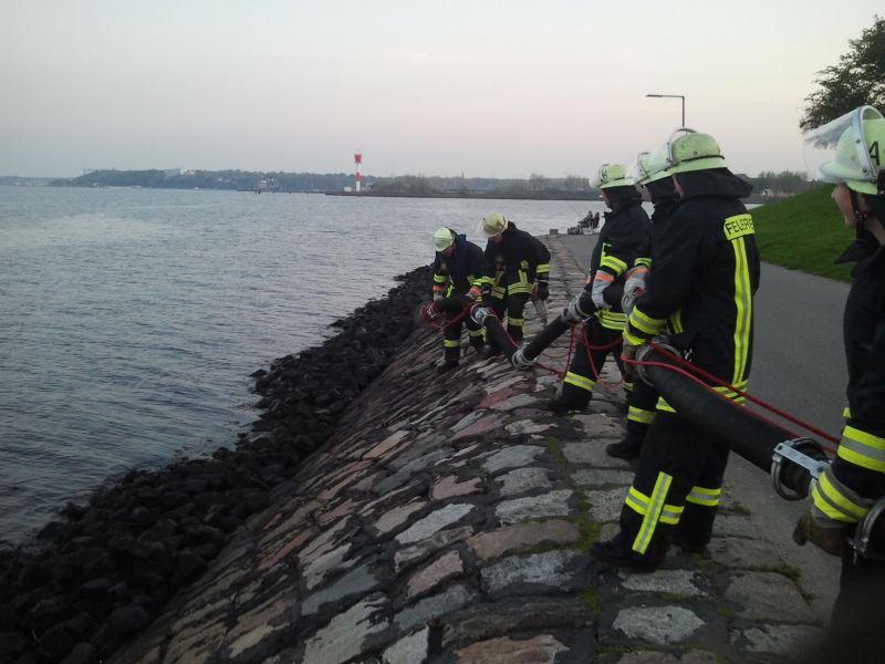Am 25. April 2014 haben wir Pumpenausbildung am Tiessenkai in Holtenau gemacht. Station 1 hat sich mit dem TLF und dem Schwerpunkt Tankbetrieb befasst, bei der Station 2 ging es um das richtige Setzen eines Standrohres und bei der Station 3 wurde Wasser mit dem LF aus der offene Wasserstelle gefördert.