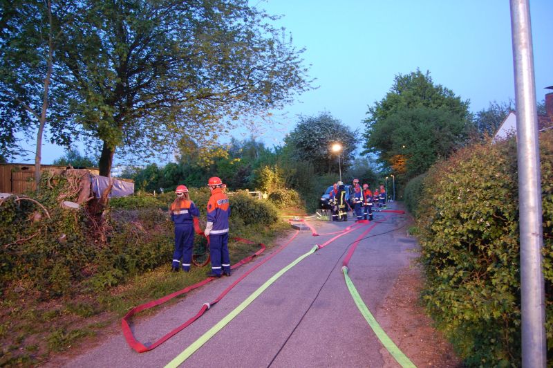 Übungseinsatz, es brennt ein Schafstall in der Schilkseer Straße.