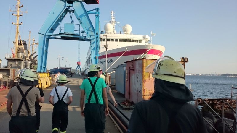 Am 13.08.2015 hatten wir die Möglichkeit uns die MS Deutschland anzuschauen die in der Lindenau Werft liegt. Wir konnten uns das ganze Schiff von der Brücke, über den Passagierbereich bis zu dem Maschinenraum anschauen. Besonderes Augenmerk wurden dabei auf die brandschutztechnischen Einrichtungen gelegt. Vielen Dank an alle die diesen Besuch ermöglicht haben.