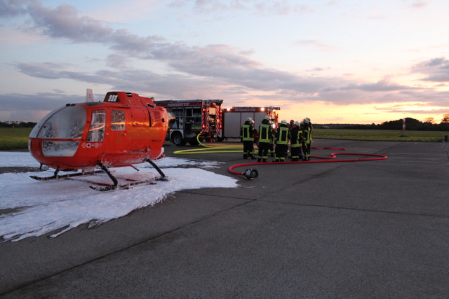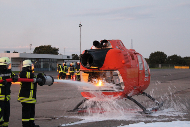 Am 01.09.2017 haben wir auf dem Gelände des Flughafen Kiel die Handhabung verschiedener Löschgeräte, wie Pulverlöscher, Schaumrohr, Hydroschild und B-Strahlrohr geübt.