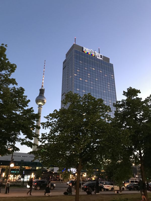 Bild 1: Das Park-Inn-Hotel am Abend vor dem Start (39 Stockwerke, 110 Meter, 770 Stufen)