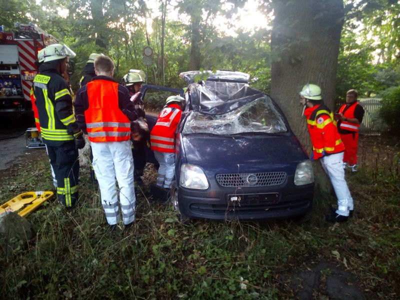 Am 17.08.2018 haben wir gemeinsam mit dem Deutschen Roten Kreuz eine Übung in der technischen Hilfeleistung abgearbeitet. In dem Übungsszenario waren 3 Personen und ein Hund in dem Fahrzeug, welches mit einem Baum kollidiert war. Eine Person und der Hund konnten sofort gerettet werden, für die beiden verbleibenden Personen wurde hydraulisches Rettungsgerät eingesetzt.