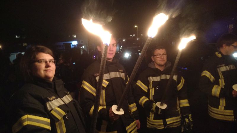 In Schilksee startete der Laternenumzug nach einem Gottesdienst an der evangelischen Kirche. Dort bestand nach dem Umzug die Möglichkeit, sich mit Bratwurst und Kinderpunsch zu stärken.