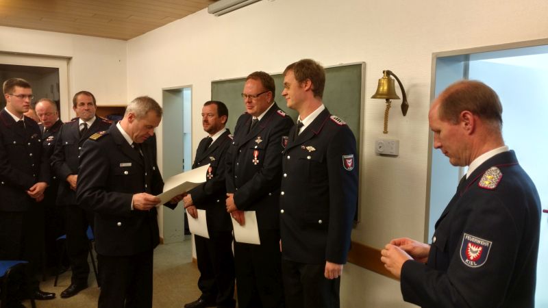 Im Rahmen der Versammlung wurden Olaf Freese, Ernst-Wilhelm Kropp, Wilfried Lüthje, Henning Schütt und Robert Schumacher für 40 Jahre Mitgliedschaft in der Feuerwehr geehrt. Alle fünf gehörten 1978 zu den Gründern der Jugendfeuerwehr und sind dem Ehrenamt in ihrem Heimatort bis heute treu geblieben. Für 25-jährigen aktiven Dienst wurden Nico Hartwig, Jan Petersen und Björn Roggensack mit dem Brandschutzehrenzeichen des Landes Schleswig-Holstein in Silber ausgezeichnet. Die Ehrung für 20 Jahre Mitgliedschaft erhielt Stephan Woelke. Bereits im November wurde das Ehrenmitglied Hans Schütt für 70 Jahre in der Feuerwehr geehrt. Für die Schilkseer handelte es sich um eine Premiere, diese Auszeichnung wird landesweit nur sehr selten vergeben.