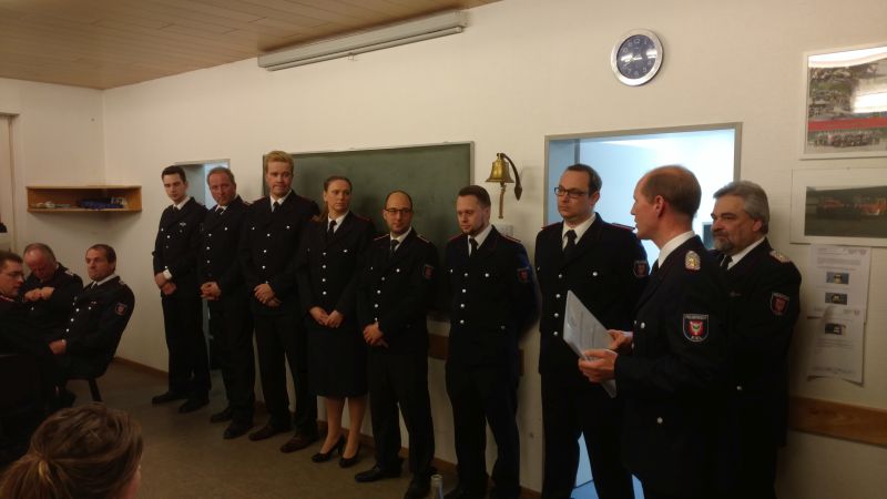Neu in die Wehr aufgenommen und zu Feuerwehrleuten befördert wurden Monika Jarosch und Marten Witzel. Volker Karner, Serge Laschinsky, Daniel Mastrangelo und Tino Schwanengel erhielten den Dienstgrad Oberfeuerwehrmann, während Dennis Pascal Meyer zum Hauptfeuerwehrmann befördert wurde.