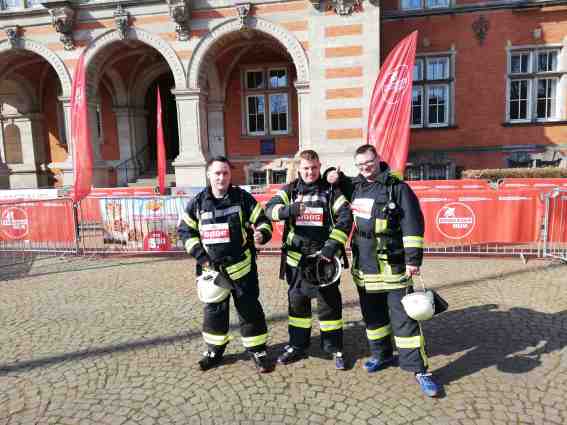 Die drei bezwangen den Parcours von 5 km in 56 Minuten in voller Schutzkleidung mit je einem Atemschutzgerät auf dem Rücken. Der Parcours forderte den Teilnehmer alles ab – bei Sonnenschein in voller Schutzausrüstung war es eine schweißtreibende Herausforderung. Im Ziel warteten viele interessierte Teilnehmerinnen und Teilnehmer und wollten Fotos machen und Fragen beantwortet haben. Die teilnehmenden Rollstuhlfahrer wurden von den Feuerwehrleuten beim Überwinden der Hindernisse tatkräftig unterstützt.