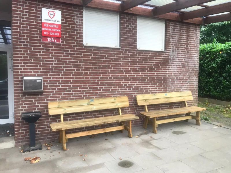 Seit Anfang Oktober haben wir vor der Wache, neben dem Eingang zum Gerätehaus zwei neue Sitzbänke, die zum Rasten, Warten oder Ausruhen einladen oder für Einsatznachbesprechungen genutzt werden können. Volker konnte dank seiner Beziehungen einen Sponsor finden, der unserer Feuerwehr zwei schöne rustikale Holzbänke gespendet hat. Diese wurden schließlich durch Volker bei OK Holz (Oliver König) auf einen Anhänger verlastet, zur Wache transportiert und dort zusammen mit Jan Göbel aufgestellt. Hier stehen sie nun und laden alle ein, Platz zu nehmen.