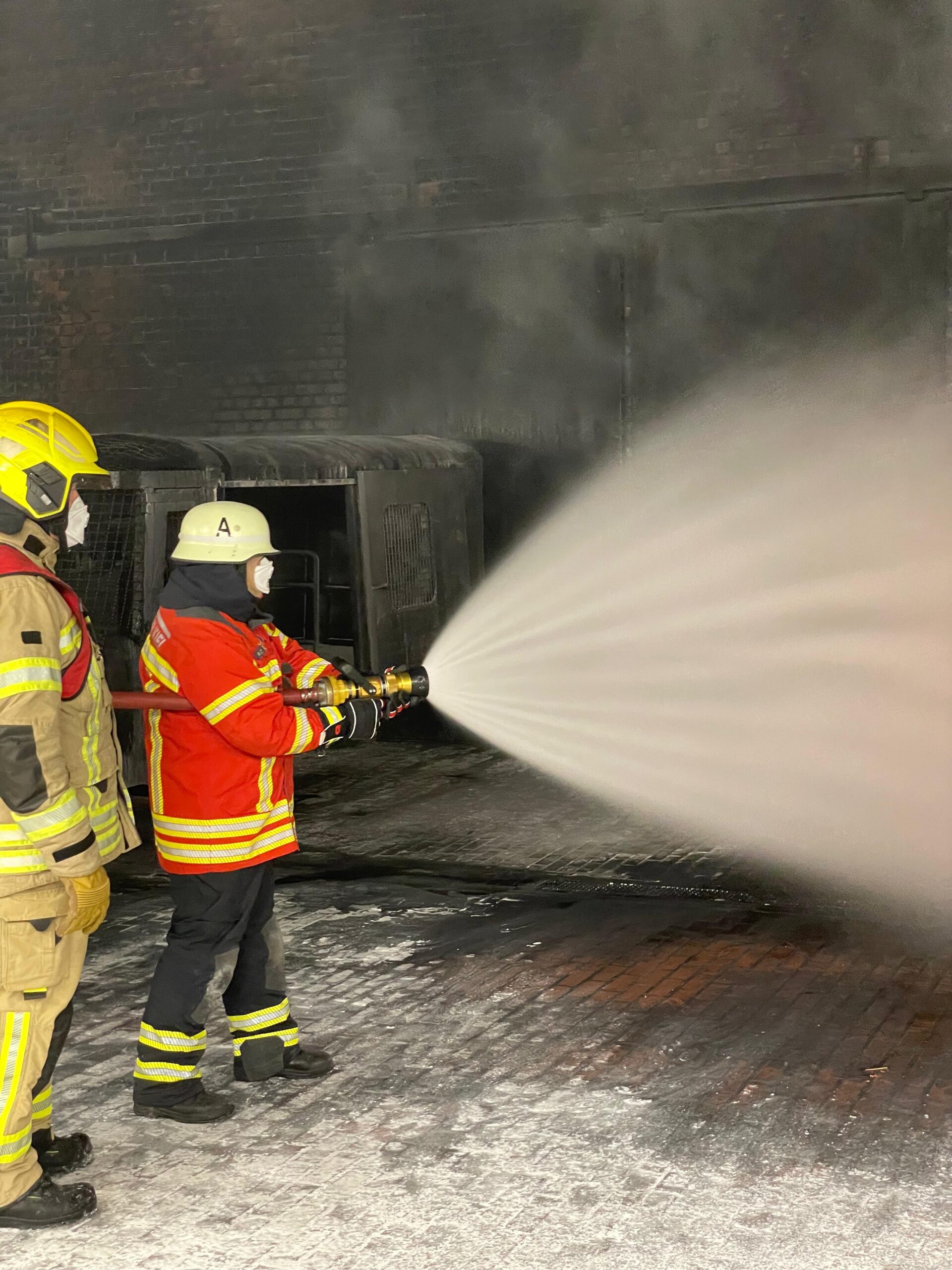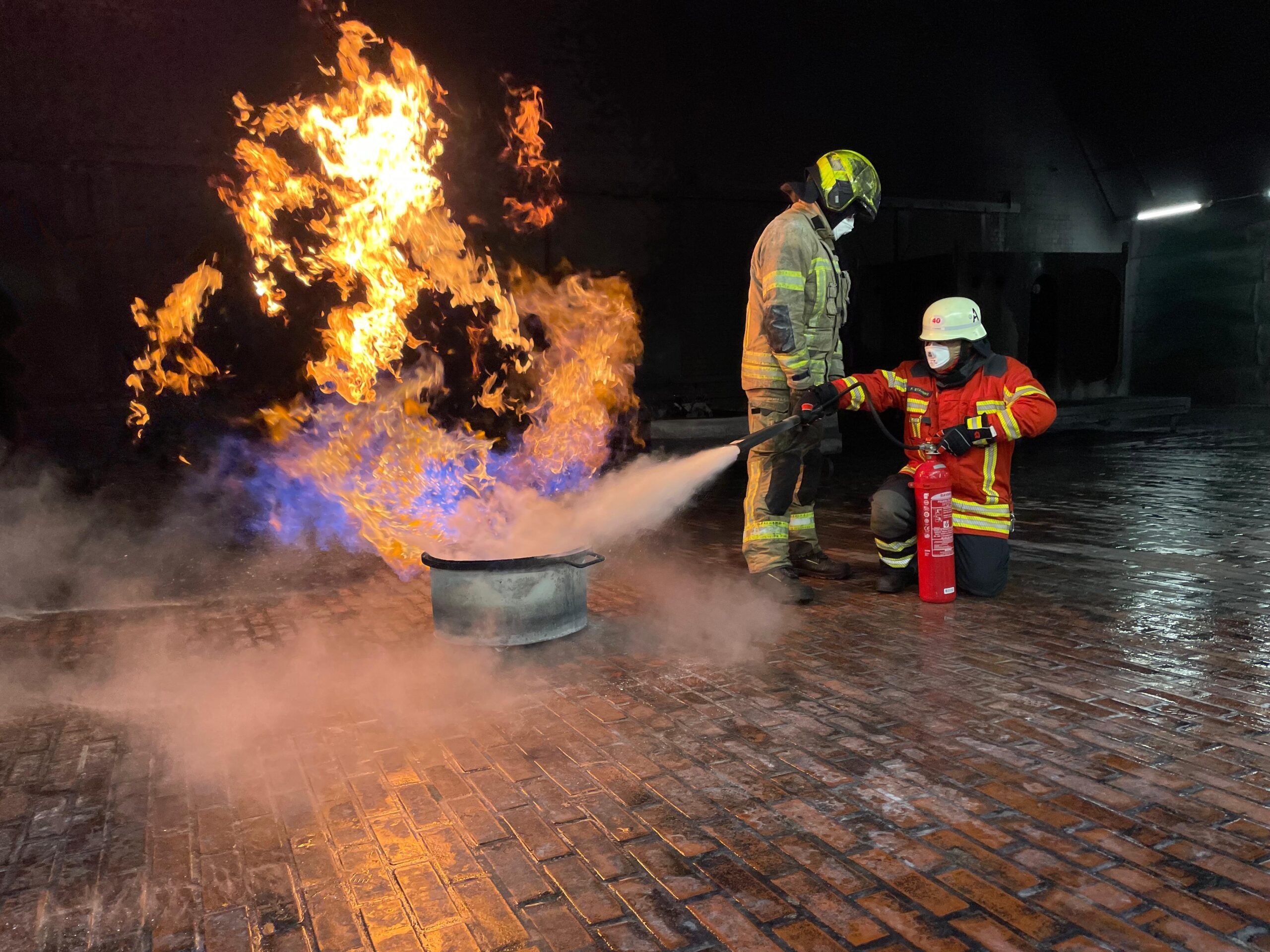 Besonderes Augenmerk lag auf dem praktischen Umgang mit verschiedenen Löschmitteln. Die Feuerwehrkräfte konnten ihr Wissen im Einsatz von